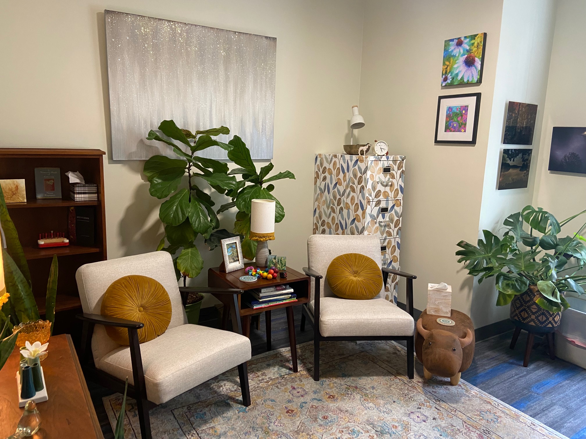 My individual sessions take place at Evaluation & Education Services, LLC. I work primarily with adults who are struggling with grief or depression, anxiety, issues related to midlife challenges, ADHD, and those striving to find a way through clutter (both mental and physical). Believing in the power of finding meaning and purpose in one’s life, I use a variety of counseling techniques including EMDR, IFS, CBT, mindfulness, existential therapy, expressive arts therapy, and equine-assisted learning.
